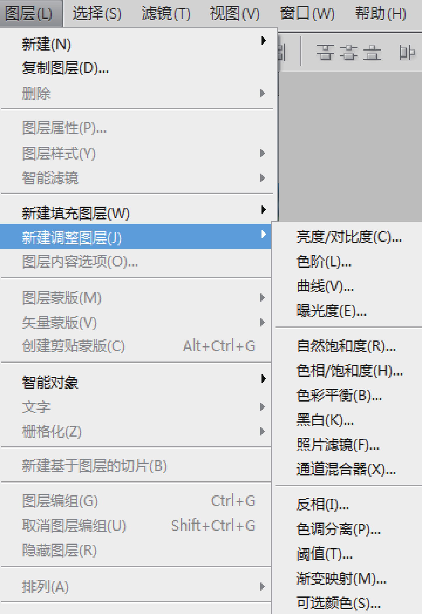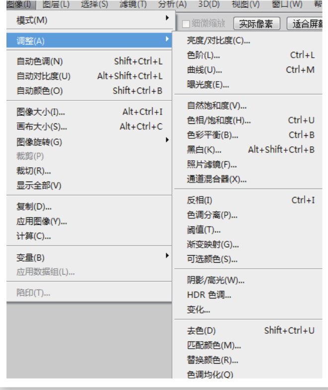 认识色彩的调整规律,其目的就是能更好地调整色彩,而调整色彩就需要借助一系列的调整指令来实现。在Photoshop中有很多调色指令,为此有相当一部分人感到头痛,其实在Photoshop中能够调整照片色彩的指令都集中在【图像】|【调整】菜单命令或【图层】|【新建调整图层】命令中,如图4-32所示。