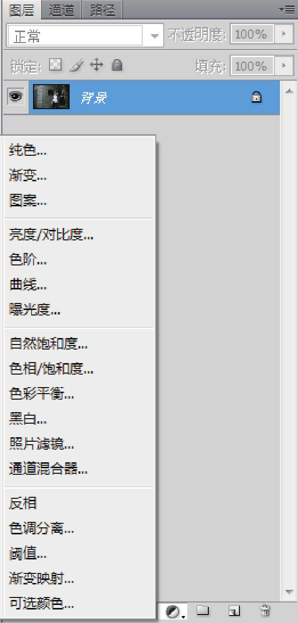 整体调色工具包括曲线、色阶、通道混合器、去色、黑白、纯色层(新建填充图层)。这些指令在某些功能上都存在共性,而其中曲线最为典型,其特点比较容易控制,也是最精确的一个,所以我们选择曲线就已经足够了。