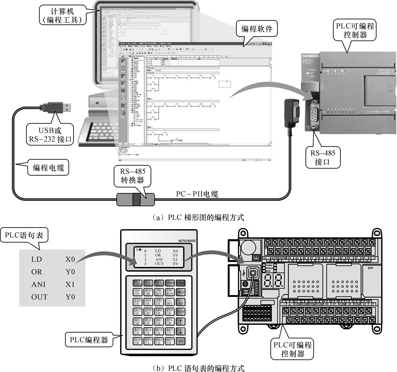 图3-18 PLC梯形图和语句表的编程方式