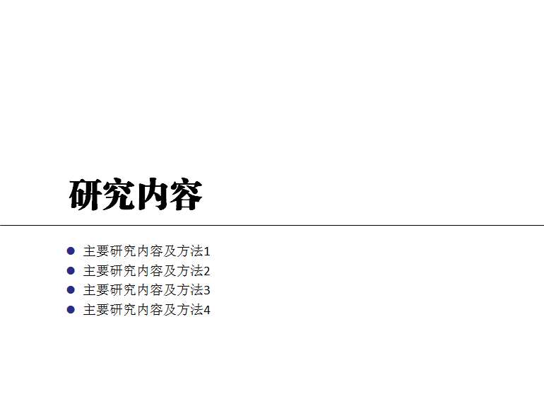 选题背景介绍完之后,紧接着就是两大重点内容:做了什么、如何做的。但在这一部分内容开始之前,建议添加转场页,用于大致地介绍研究思路和研究内容,简单的转场页做法如图2-10所示。