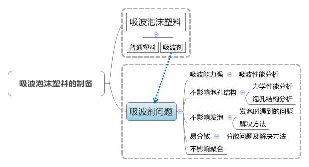 对原有结构进行分析,可以看出关键词“吸波剂”贯穿始终,以关键词为中心对信息进行重排,则得到的新结构如图2-5所示。如果使用思维导图软件,则只需要拖动节点即可快速完成结构的转换。