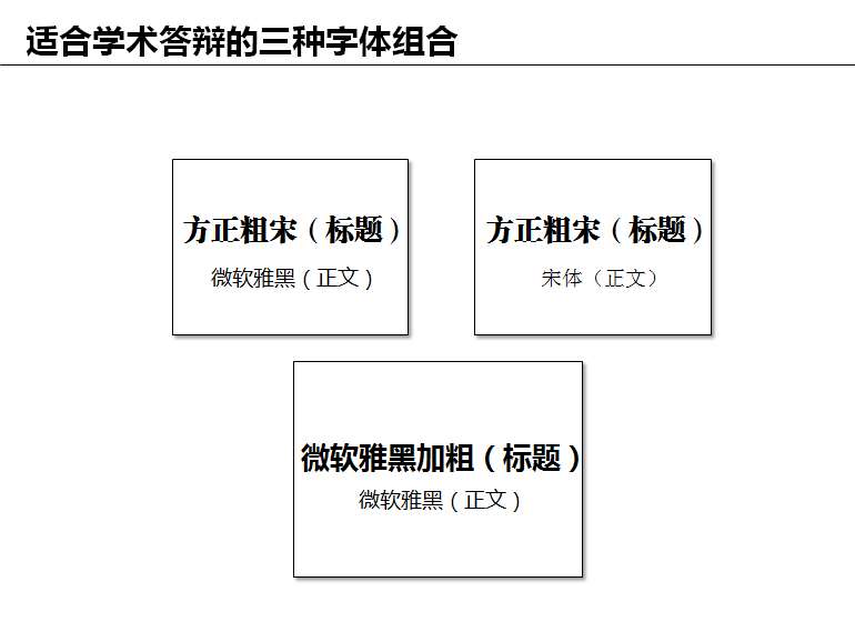 字体只需要选择两种,分别用来做标题和正文,只用一种字体也可以。宋体很正统,不过用做标题时笔画太细,即使加黑后也没有厚重感。方正粗宋和微软雅黑搭配效果不错,前者用做标题,后者用做正文。三种适合的字体方案如图2-8所示。