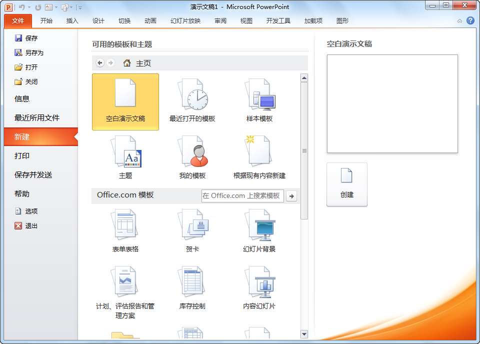 单击“文件”菜单下面的“选项”按钮,即可打开PowerPoint的软件设置选项。在“自定义功能区”中,可以添加默认没有显示的命令,甚至可以自定义建立一个新的菜单。下面来做一个新菜单:将PowerPoint 2010默认没有显示但非常有用的命令放到我们自定义的菜单中。