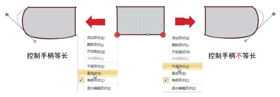 图3-17 “直线点”和“平滑顶点”的控制手柄