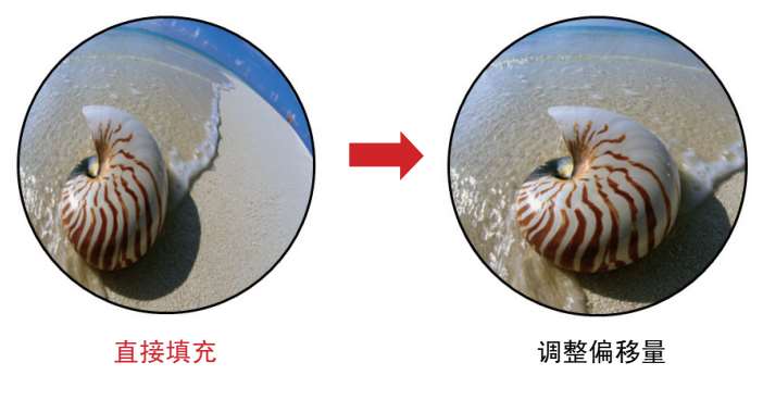 改变图片的偏移量,即改变图片的上、下、左、右四个边与自定义图形上、下、左、右四个边的距离,因此实际上是对图片进行了拉、压或者缩放,如图3-30所示。