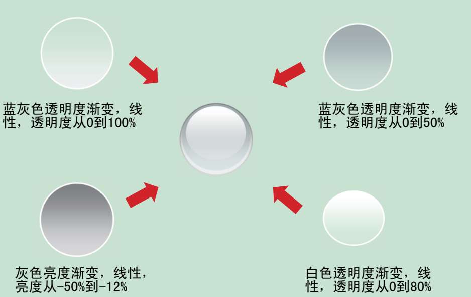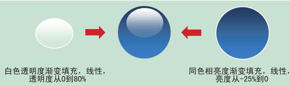 但对于通透效果的球体,在实际操作中常常需要结合上述两种渐变形式,如图3-61所示。