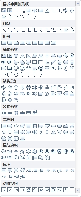 PowerPoint中内置了很多形状,如图3-13所示。如果想做一个矩形,只需要选中“插入”选项卡“形状”下的“矩形”工具,然后在PPT中拖动一下鼠标就可以了。如果拖动的同时按住Shift键,就会得到一个正方形。同样的,选择椭圆工具后按住Shift键拖动会得到正圆。对于一个已经生成的图形,缩放时按住Shift键还会将其等比例放大。