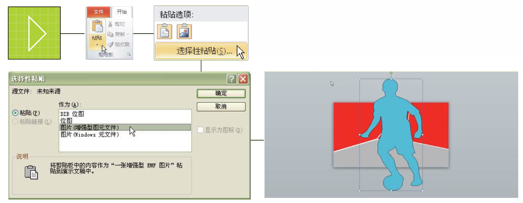 其二,在PPT页面里,单击“粘贴/选择性粘贴/图片(增强型图元文件)”,把矢量图形复制到PPT里。(快捷键:Ctrl+Alt+V)