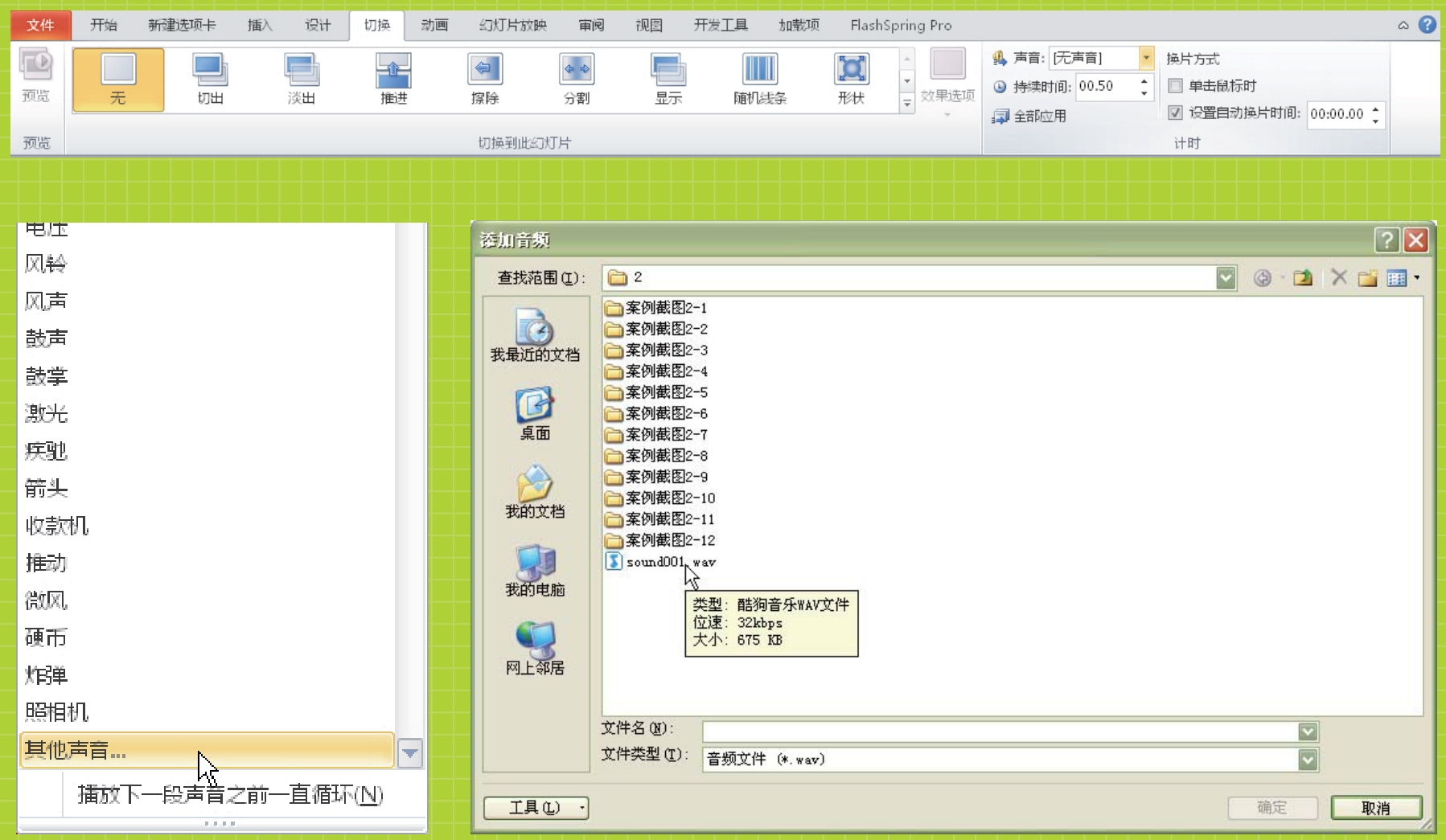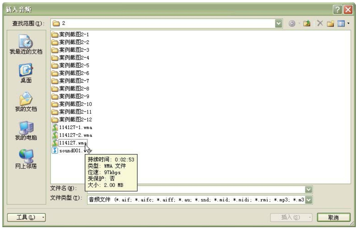 声音文件一般与背景声音的添加方式相同,只是有两点需要说明: