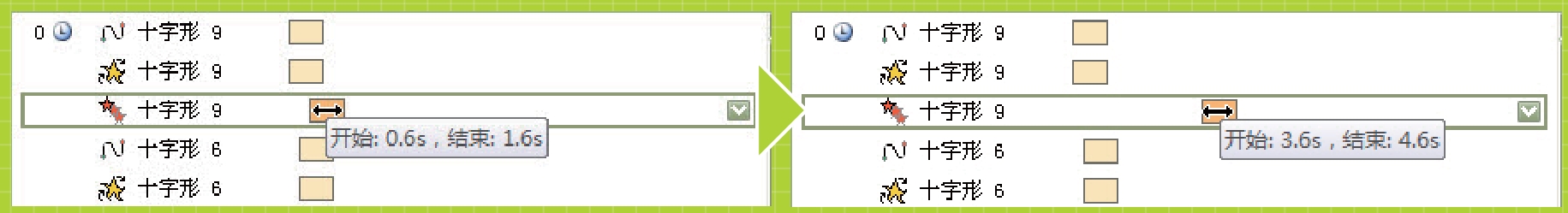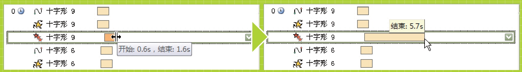 2)拉动时间轴的起点或终点,会延长或缩短动画时间