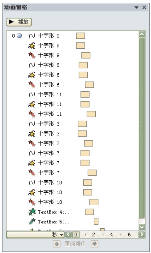 打开自定义动画窗格,我们可以看到清晰的时间轴,我们可以了解设计者制作此动画的思路和方法。