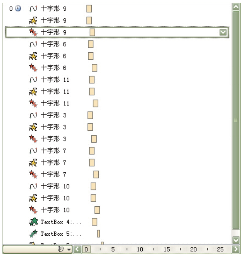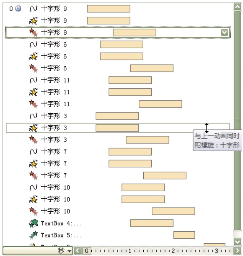 在PowerPoint 2007版本里,还需要右键任意动作,单击“显示高级日程表”