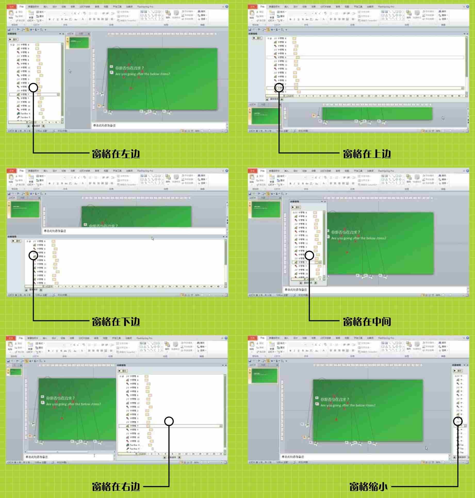 根据操作习惯,动画窗格可以分别居于操作区右方、上方、左方、下方以及任意区域五种位置。