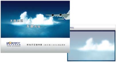logo是公司PPT模板必不可少的元素;有宣传的地方自然少不了广告语;大海、蓝天、云团,象征着天高地远——新地天媒体;取材于航空,却只使用机翼,代表了无限的传播力,却又含情脉脉;简洁的线条勾勒,与传媒视窗的感觉不谋而合。