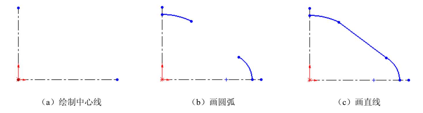 绘制时让相接的圆弧、线段端点重合,同时注意光标提示,使初步绘制的草图尺寸与给定的尺寸大致相等,不要相差太大,以免添加约束时草图轮廓产生突变。