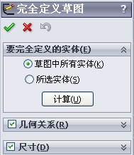 (9)选择菜单栏中的“工具”→“标注尺寸”→“完全定义草图…”,单击“完全定义草图”属性栏中的