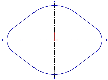 (9)上下镜向复制。敲回车键重复镜向命令,选择草图上部,以水平中心线作为镜向线,镜向复制出全图,如图 2-51 所示。现在圆弧和切线都是蓝色显示,缺少尺寸标注。