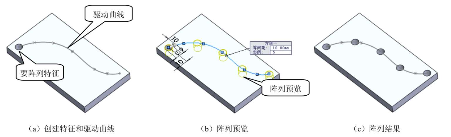 沿平面或 3D曲线生成阵列,其创建过程如图 3-41 所示。