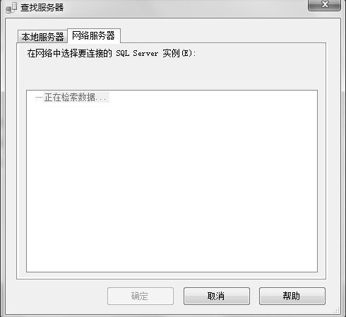 step 5 如果要连接的数据库服务器不是本地服务器,则在【查找服务器】对话框中打开【网络服务器】选项卡,如图 4.3 所示,在这里可以选择网络上的SQL Sever服务器和实例。