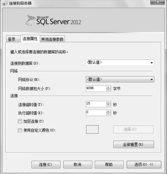 ◆ 默认连接选项: 默认连接的选项内容比较多,如表 4.1 所示。