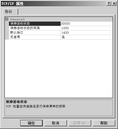 ◆ 【保持活动状态】: 指定传输保持活动状态的数据包的时间间隔,以毫秒为单位,用于检查位于连接远端的计算机是否仍可用。