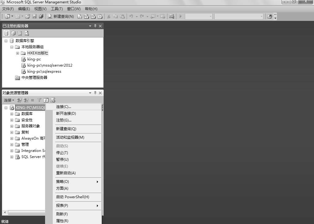 SQL Server Management Studio同样可以完成针对SQL Server服务的操作,具体步骤如下。