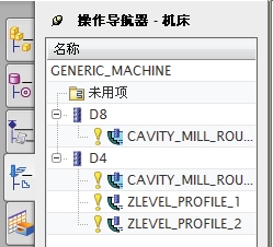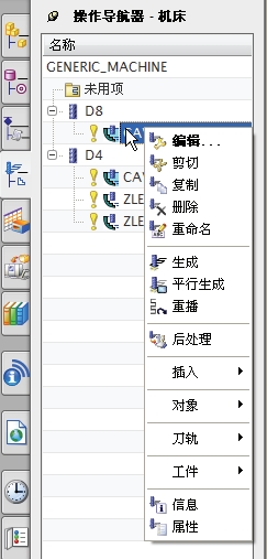 操作导航器是一个图形用户界面,用来管理当前加工模型的操作及刀具路径。操作导航器具有强大的编辑功能,通过操作导航器,用户几乎可以完成 90%以上的工作。通过操作导航器,可以执行以下操作: