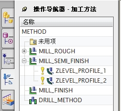 ● 加工方法视图:根据共享相同参数值的公共加工应用(例如粗加工、半精加工和精加工)组织操作,如图 3-11 所示。