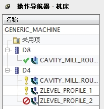 用户对模型进行了加工操作并生成、编辑了加工程序后,在操作导航器中的操作前面会显示不同的状态符号,如图 3-18 所示。这些符号表示了不同的含义: