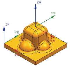 每个定向组都有一个RCS。在进行创建、编辑、粘贴或变换操作时,系统将使用父几何体的RCS来确定许多参数的方向。这样您就可以调用和映射已存储的参数,从而不必重新指定像进刀矢量、安全平面这样的参数了。在以后的操作过程中,这些参数重新定位至当前的(已经移动的)RCS。RCS参考坐标系的坐标轴表示为 XR 、 YR 和 ZR 。