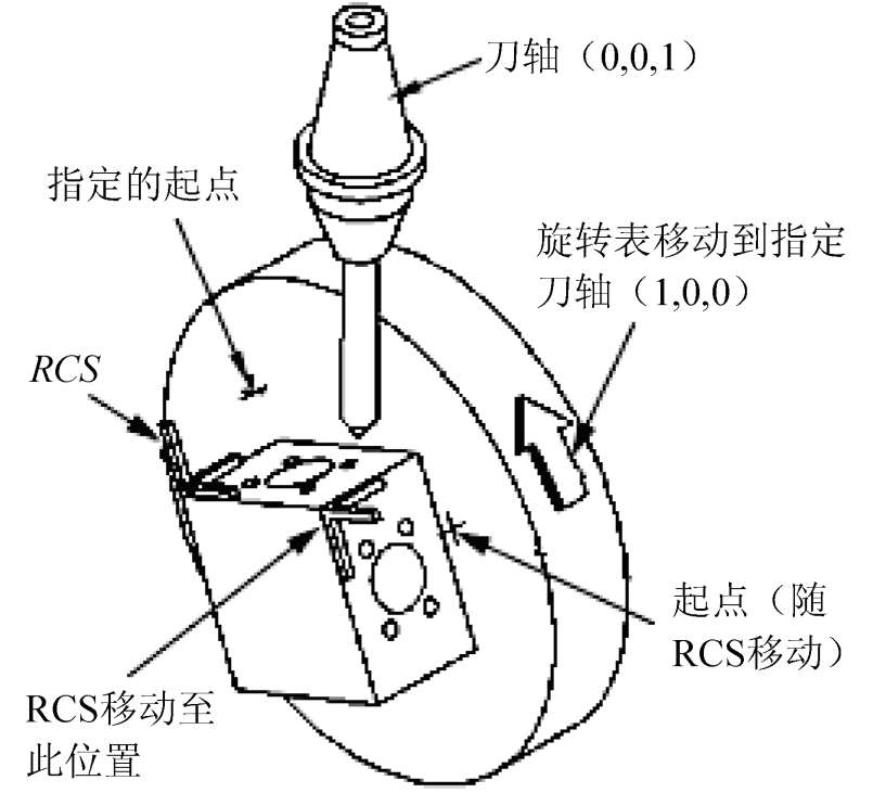 在将操作从部件的一个部分移动到另一个部分时,使用“参考坐标系”(RCS)来重新定位非建模几何参数(即刀轴矢量、安全平面等)。