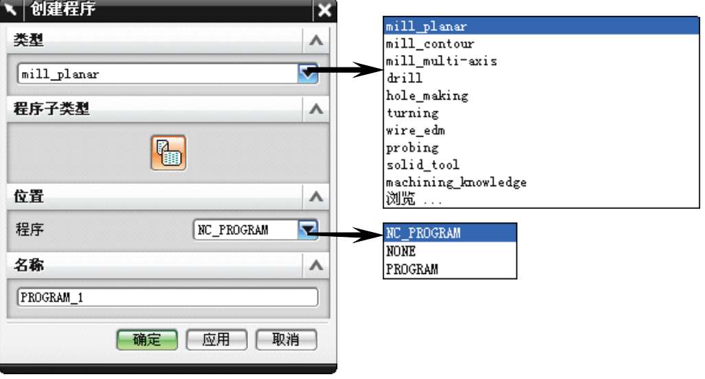 ● 【位置】选项区:在【程序】下拉列表框中为程序对象选择父组。系统将在用户选择的父组中创建程序。
