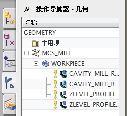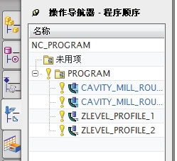 操作导航器具有 4 个用来创建和管理NC程序的分级视图,包括程序顺序视图、几何视图、机床视图和加工方法视图。每个视图都根据以下视图主题来组织相同的操作集合:程序内的操作顺序、使用的刀具、加工的几何体或使用的加工方法。4 个视图以不同的方式来显示相同的操作集。