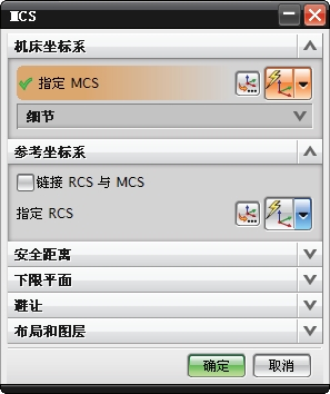 在UG NX 7.5 建模环境中,除了大家所熟知的ACS(绝对坐标系)和WCS(工作坐标系)外,在CAM加工环境中还包括有RCS(参考坐标系)和MCS(机床坐标系)。