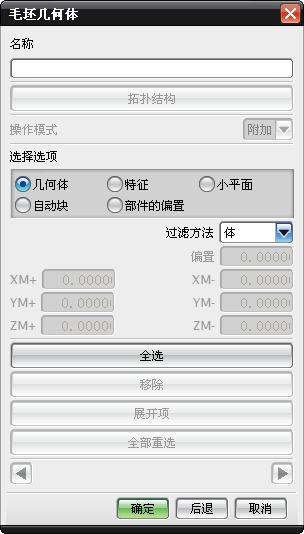 ,将弹出【毛坯几何体】对话框,如图 3-31 所示。通过该对话框可以选择几何体、特征、面、自动块或部件的偏置等方法。