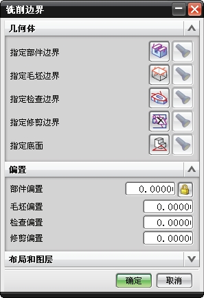 MILL_GEOM与WORKPICE可以执行相同的功能,可从选定的体、面、曲线或曲面区域定义部件、毛坯和检查几何体。另外使用这两个图标还可定义“部件”偏置、“部件材料”,并保存当前显示的布局和图层。