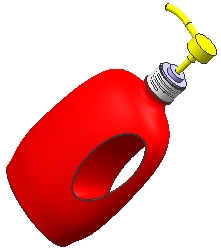 以“自底向上”的装配设计方法将沐浴露瓶各个部分(瓶身、瓶嘴和气压装置等)逐一设计完成后,再通过“添加组件”工具将各部件装配在一起。最终装配完成的沐浴露瓶如图1-51所示。