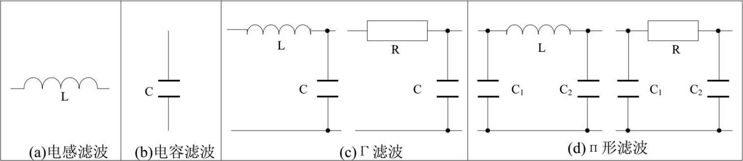 图2-11所示给岀了常用的几种滤波电路。普通的整流滤波电路经常采用电容滤波;在变频器中最常采用的滤波方式为电感器和电容器组成的г型滤波。г型滤波最大优点是电感滤掉高次谐波,电容为低通滤波,从而使得滤波后的电压更平滑。对变频器而言整流滤波后的直流电压越平滑,经逆变电路作用后,越容易得到比较近似于正弦的交流电压,有利于交流异步电动机的运行。