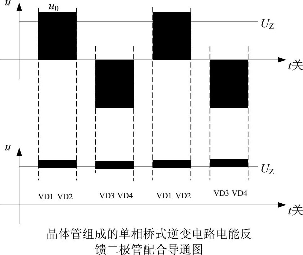 图2-15 二极组成的单相桥路在电能反馈状态下二极管配合导通图