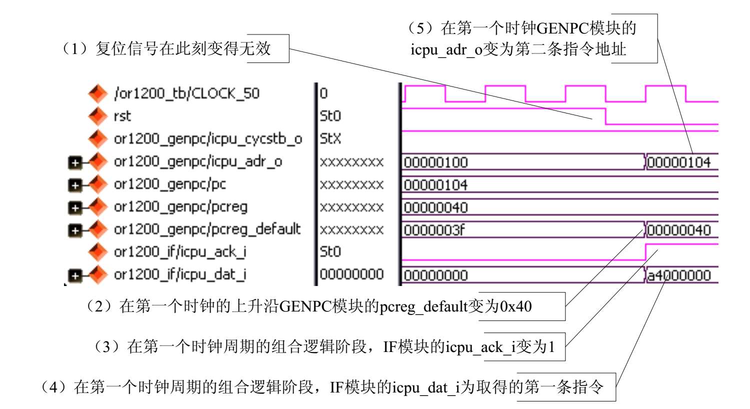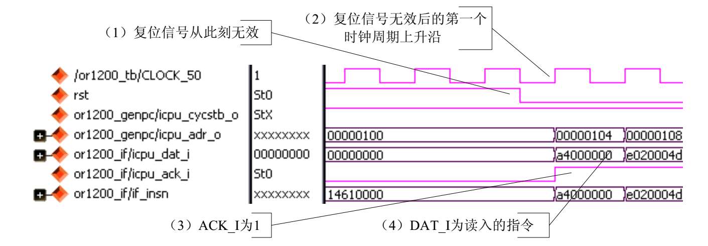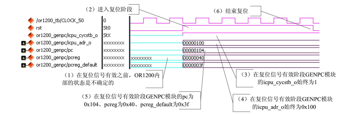 复位信号有效阶段指的是OR1200的输入信号rst为1的时期。