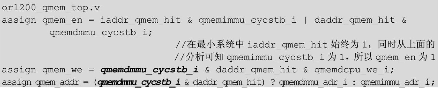 对QMEM模块重点分析其内部RAM的接口信号,如3.4节的分析,主要是qmem_en、qmem_we和qmem_addr。