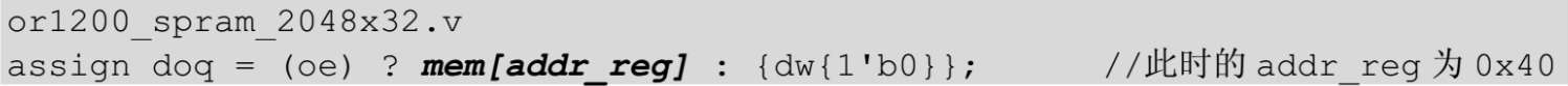 从上面的代码可知在复位的时候dcpu_cycstb_o为0,所以QMEM中RAM的qmem_we为0,qmem_addr为qmemimmu_adr_i,即指令Wishbone总线输入的地址,此时是0x100。