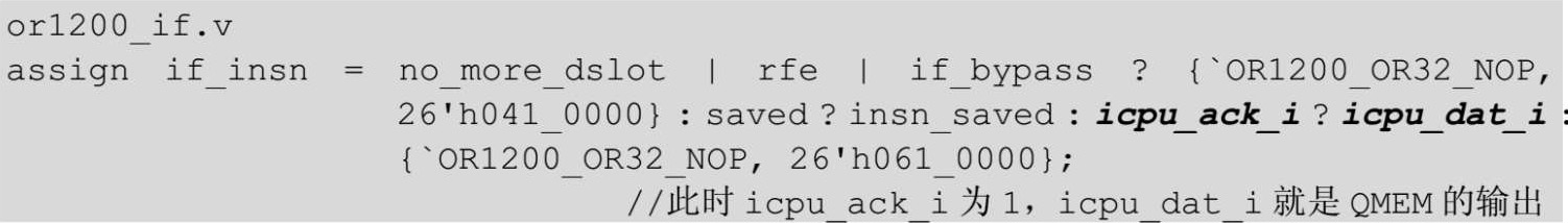 参考图3.8可知qmemicpu_ack_o输出到IF模块的接口icpu_ack_i,qmemicpu_dat_o输出到IF模块的接口icpu_dat_i。