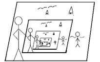 递归是一种特别有用的工具,不仅在数学中广泛应用,在日常生活中也常常遇到。例如一个画家所制作的如图1-21所示的一幅画便是一种递归的图形。