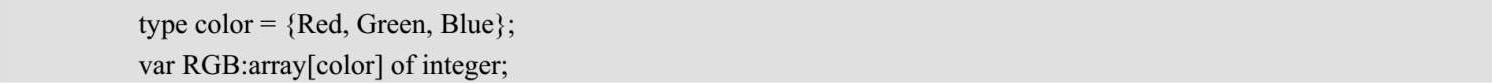 在给定下标值范围的语言中,下标范围不必从1开始,也不必是整数的范围,可能是枚举类型或枚举类型的子序列,例如: