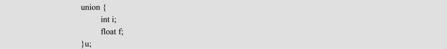 联合u既可以存储int类型数据,也可以存储float类型数据。我们可以把C中的联合看成一个特殊的结构,其中所有的成员相对于结构开始处的偏移量都为0,且结构的存储量大得足够存储最大的成员。在任一时刻,我们只能访问联合中的一个成员。