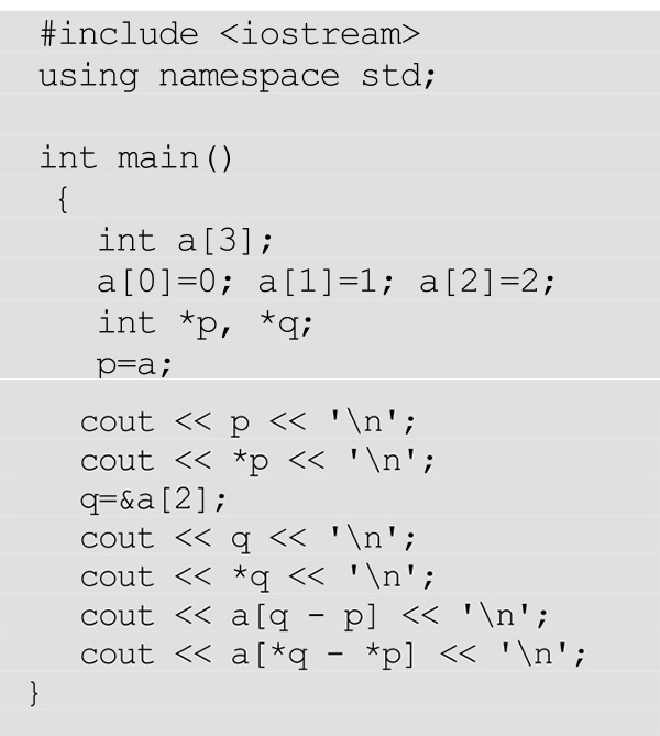 (2)int*a;//A pointer to an integer