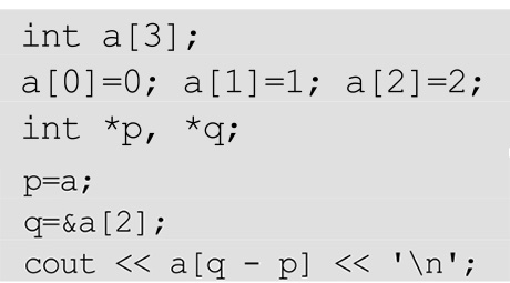 q-p的实际运算是(q的地址值(0x22ff70)-p的地址值(0x22ff68))/sizeof(int),即8/sizeof(int)=2。
