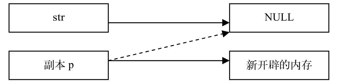解析 :毛病出在函数GetMemory中。void GetMemory(char*p,int num)中的*p实际上是主函数中str的一个副本,编译器总是要为函数的每个参数制作临时副本。在本例中,p申请了新的内存,只是把p所指的内存地址改变了,但是str丝毫未变。因为函数GetMemory没有返回值,因此str并不指向p所申请的那段内存,所以函数GetMemory并不能输出任何东西,如下图所示。事实上,每执行一次GetMemory就会申请一块内存,但申请的内存却不能有效释放,结果是内存一直被独占,最终造成内存泄露。