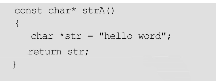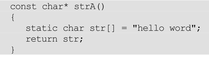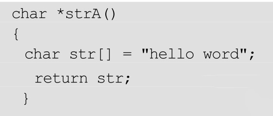 解析 :这个str里存的地址是函数strA栈帧里“hello word”的首地址。函数调用完成,栈帧恢复到调用strA之前的状态,临时空间被重置,堆栈“回缩”,strA栈帧不再属于应该访问的范围。存于strA栈帧里的“hello word”当然也不应该访问了。这段程序可以正确输出结果,但是这种访问方法违背了函数的栈帧机制。